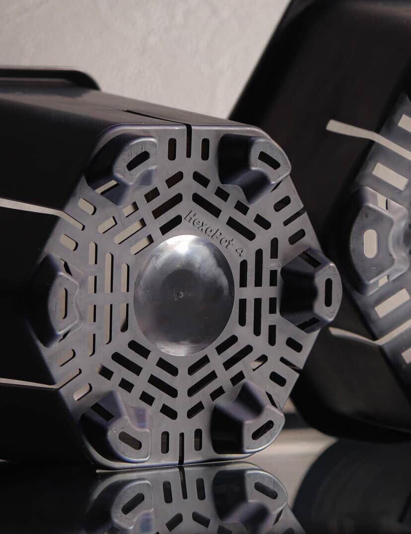 HexaPotは六角形の洗練されたフォルムに、植物の成長を科学する機能を凝縮。